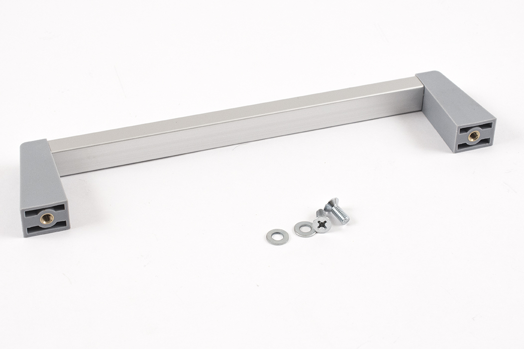 - Description: handle - extruded aluminum. 7" hole centers. Clear handle and grey posts.