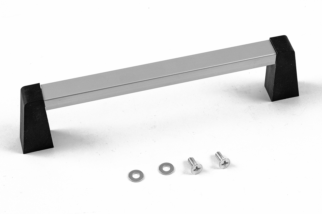 - Description: handle - extruded aluminum. 6" hole centers. Clear handle & black posts.