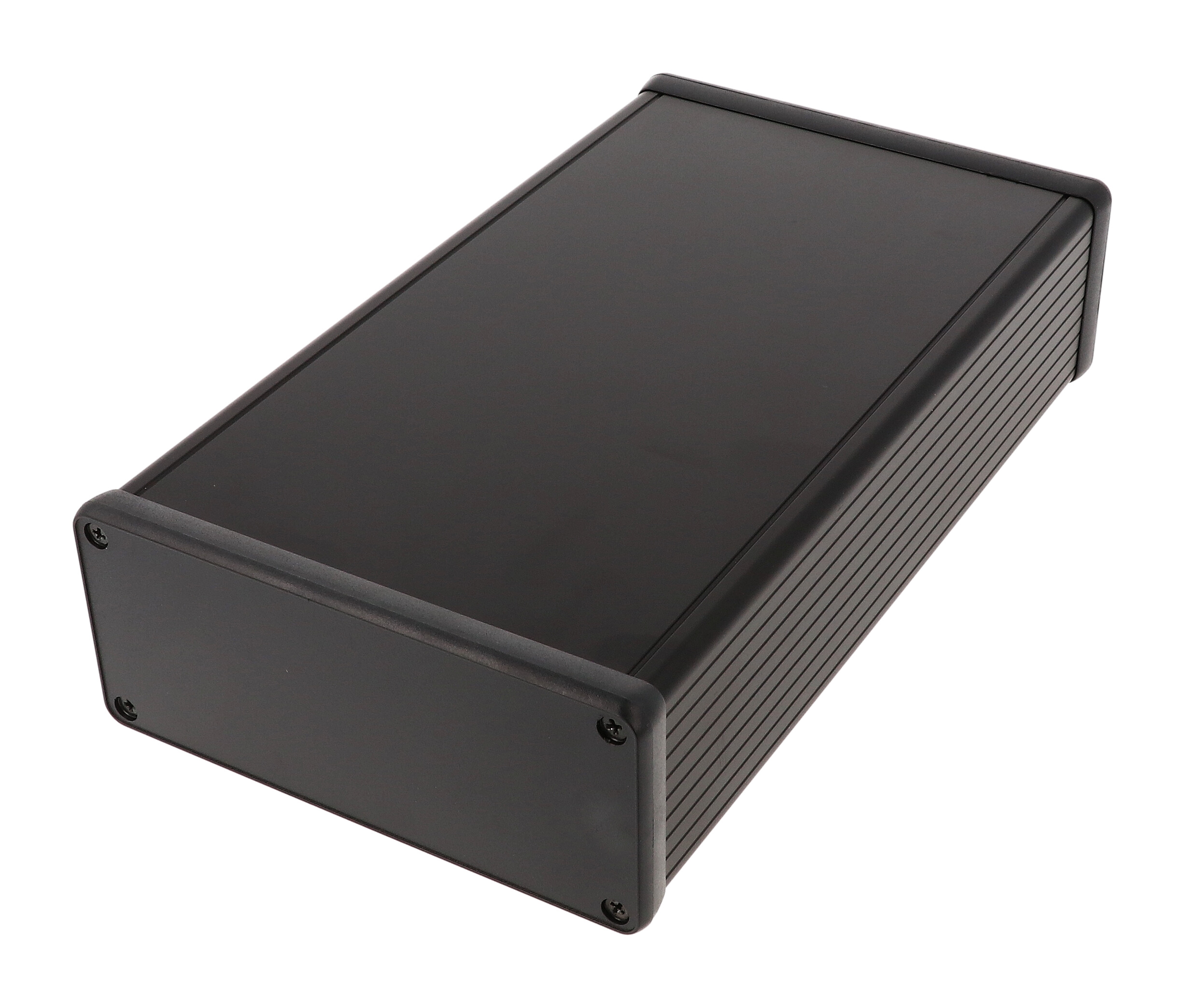 - Description: black extruded aluminum enclosure w/ plastic end panels