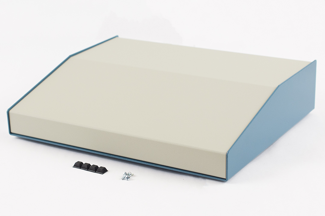 - Description: sloped metal console; 15 degree; beige top; blue case