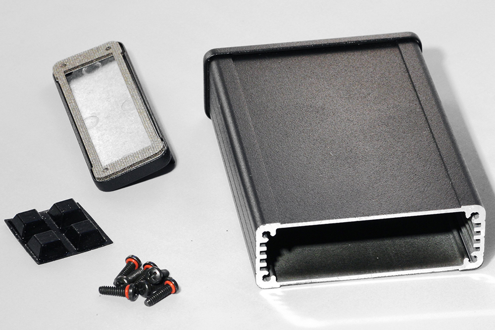 - Description: black EMI/RFI shielded extruded aluminum enclosure flanged panels 4.73x3.30x1.12
