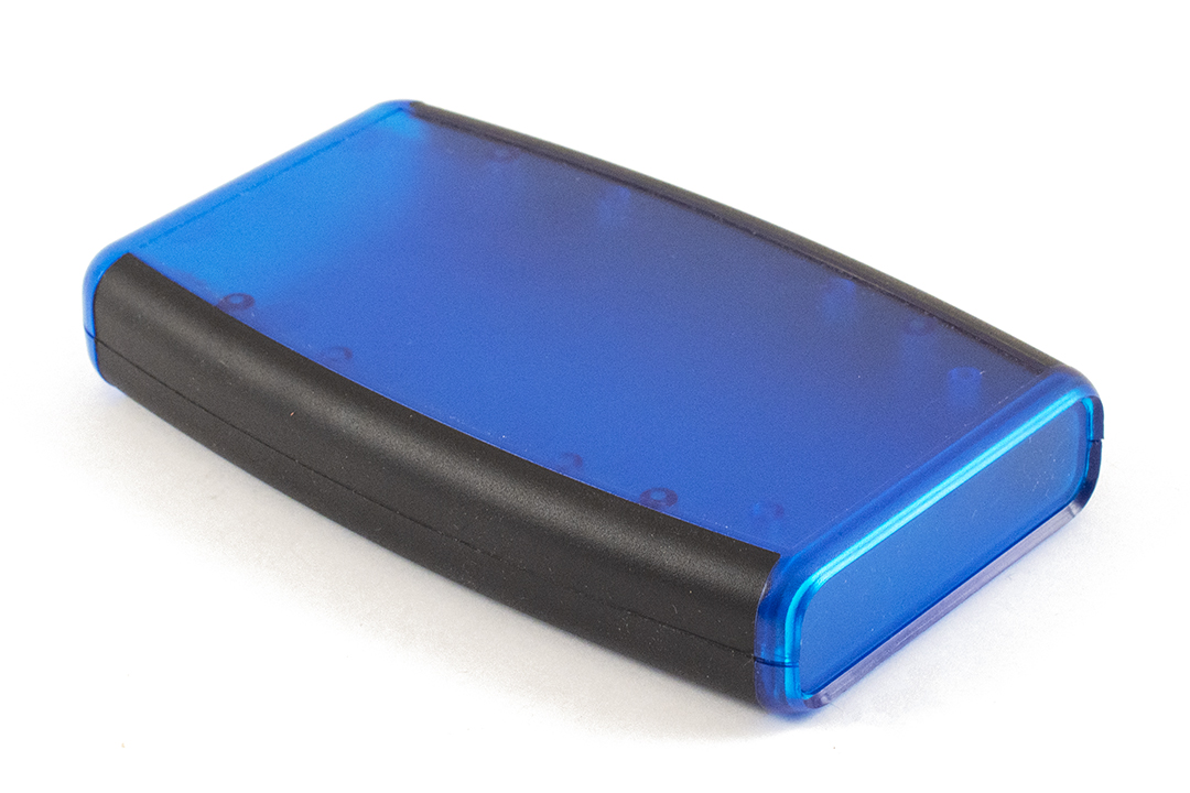 - Description: trans. blue ABS w/ black soft side enclosure & battery door 5.80x3.50x0.98