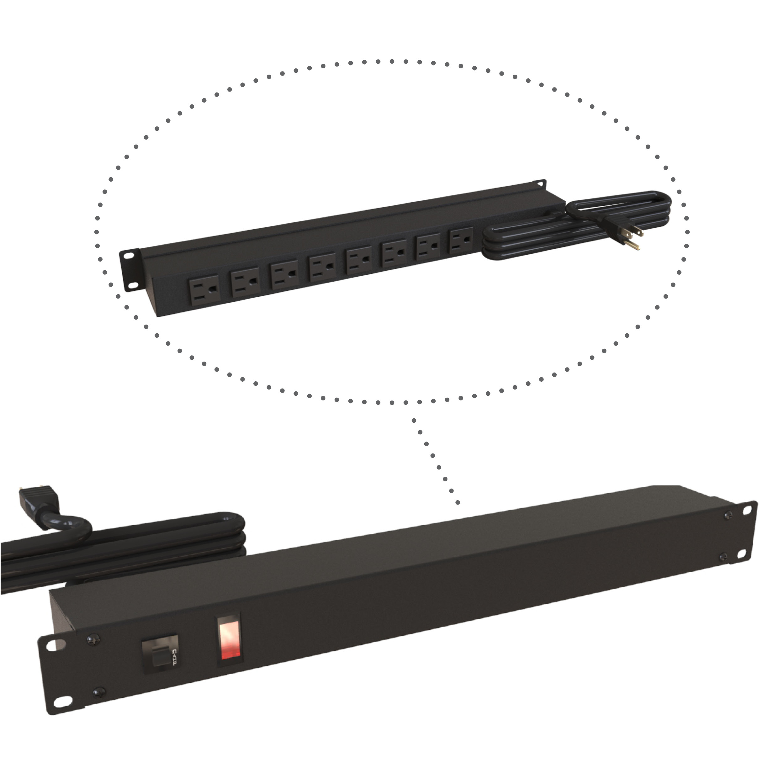 - Description: 19-inch Rack Mount Outlet Strip, 15A, 8 Outlets, 6 ft cord, Black