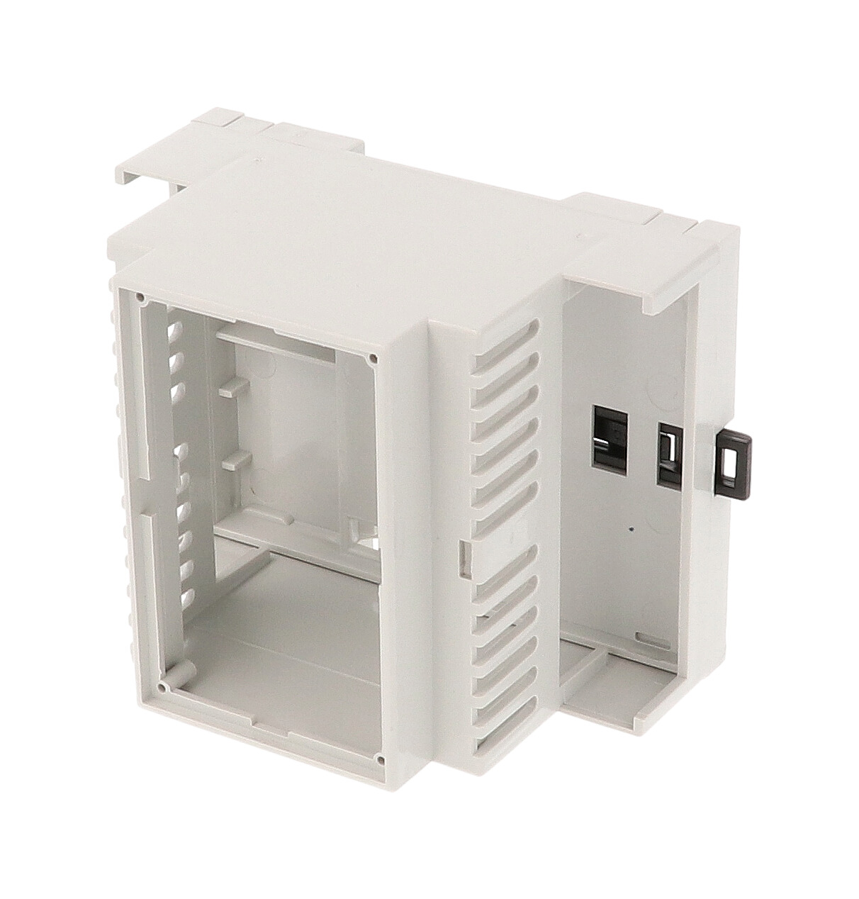 Description:DIN4, OPEN TOP, OPEN TERMINALS 2 SIDES, VENTED, GREY