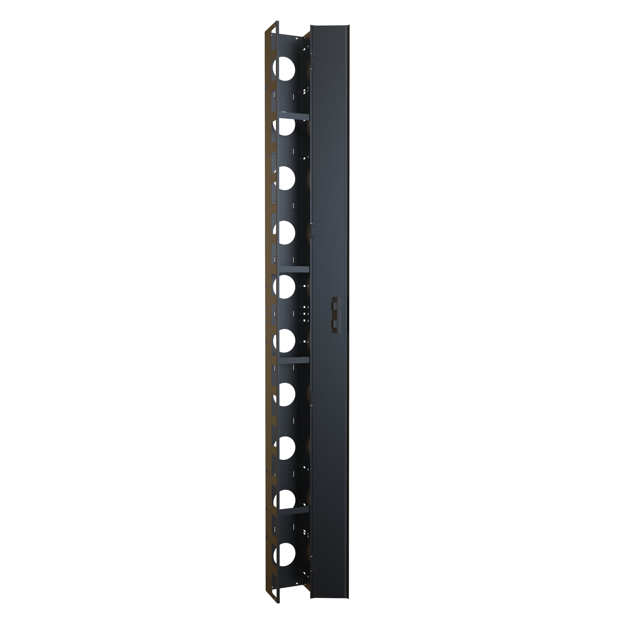 - Description: 44U Heavy Duty 6" Wide by 5" deep vertical cable manager with hinged door